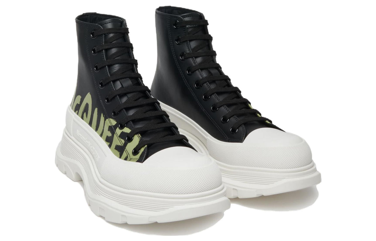 Alexander McQueen Tread Slick Lace-up High Top Shoes 'Black White' 777960WIAT61680 #