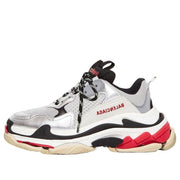 This 'Red Silver White' version brings a bold pop of color to the classic Triple S design, perfect for those who seek a striking, fashion-forward sneaker that merges luxury and street style