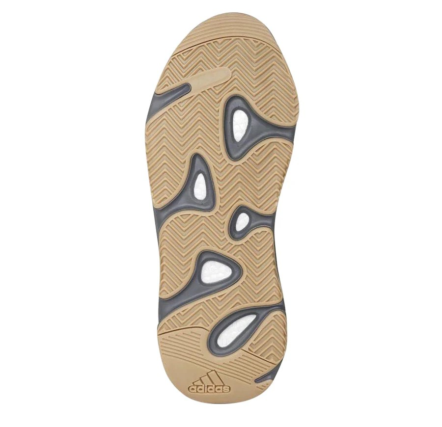 This model incorporates Adidas’ Boost cushioning within the midsole, providing a responsive, plush feel with each step. The midsole is wrapped in a slightly darker, taupe-toned overlay, blending with the upper for a unified aesthetic while enhancing support. The midsole’s sculpted design is both functional and stylish, showcasing a wave pattern that emphasizes the chunky, 90s-inspired look that the Yeezy 700 series is known for.